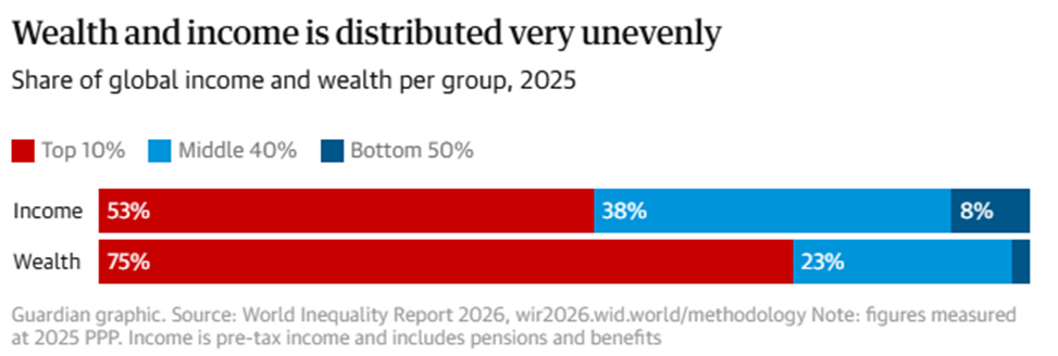 the world’s population – control three times as much wealth as the entire